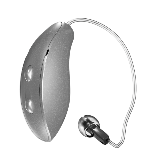 We typically recommend either a CROS or a BiCROS system. A CROS system consists of a single microphone and single receiver contained in two individual devices (one for each ear). The ear with little-to-no functional hearing is fit with the microphone-equipped device, and the ear with normal hearing is fit with the receiver-equipped device. Sound arriving at the ear with hearing loss will then transmit through a wireless connection to the receiver-equipped device on the normal-hearing ear — to help you hear sounds regardless of which side they’re coming from.